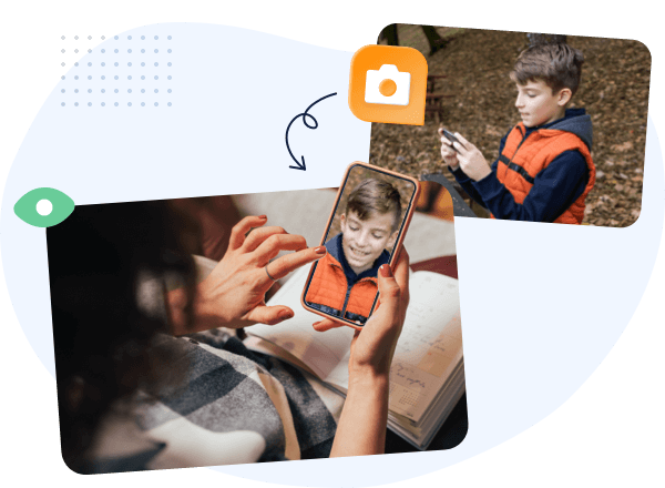 - No importa lo lejos que estés, puedes acceder de forma remota a la cámara del teléfono de tu hijo/a, frontal o trasera, para observar su entorno en tiempo real.
