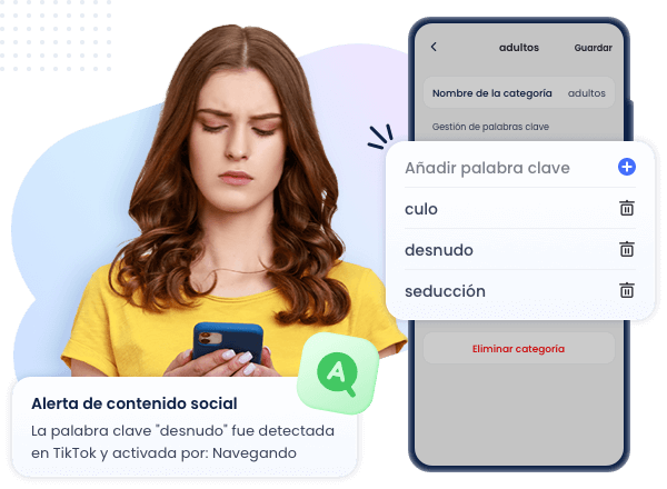 - Recibe alertas si tu hijo navega con palabras clave relacionadas en vídeos de TikTok.