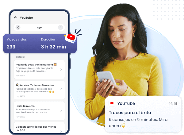 - Recibe notificaciones de YouTube en tiempo real desde el Android de tu hijo.