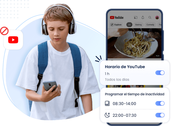 - Programa el tiempo de inactividad o establece límites de tiempo para el uso y el acceso a YouTube (aplicación o sitio web).