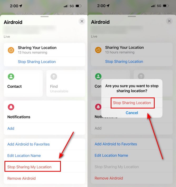 - Go to Find My → People→ Stop Share My Location.