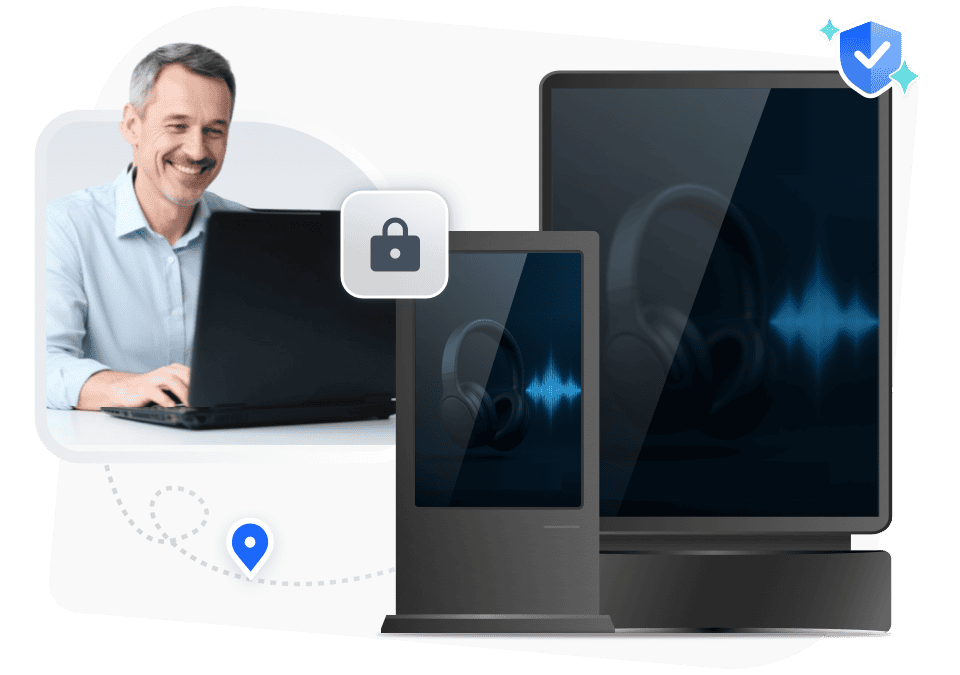 Manage ads on taxi, ride-share, or transit screens. Update campaigns remotely, use Kiosk Mode for secure playback, and monitor device status on the go.